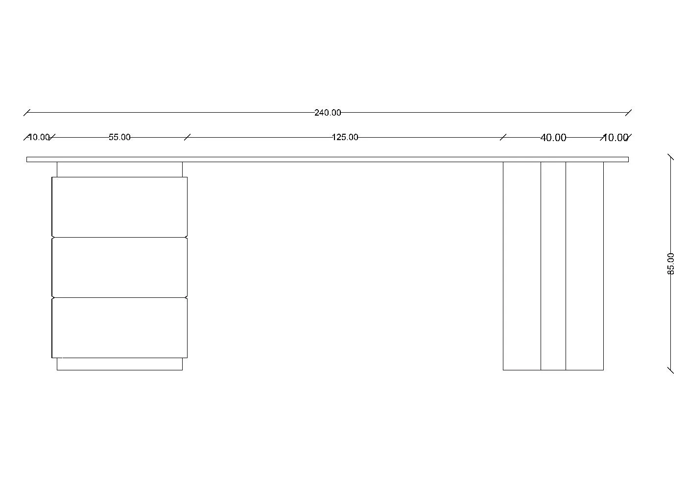 Desktop: 18 mm melamine-faced board with PVC edge banding.